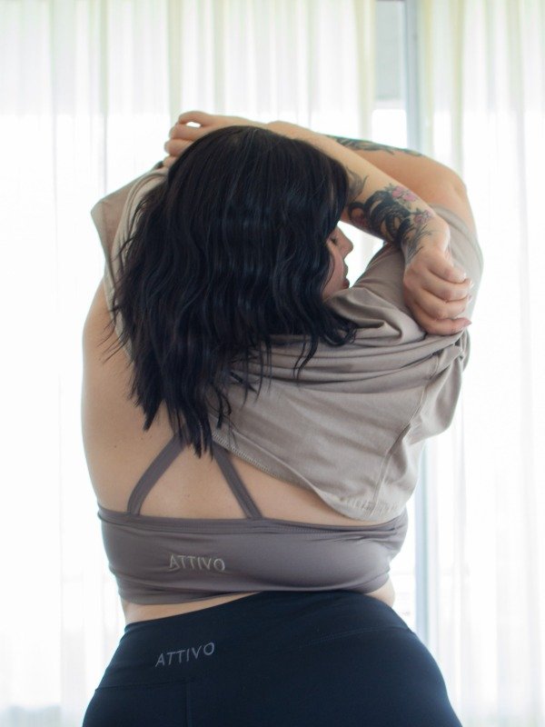 Top de tiras cruzadas con doble costura reforzada, forrado por dentro.